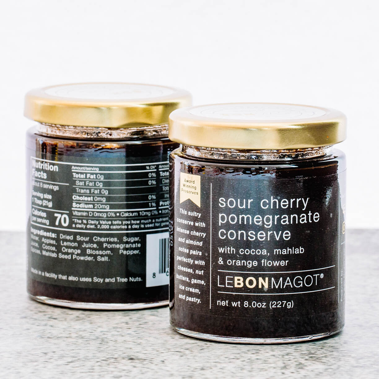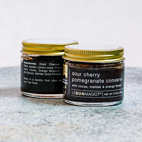 A quintessentially Persian preserve with Oregon sour cherries and a spice blend incorporating notes of cocoa, orange flower and pepper. Orange flowers are perfumed with intense notes of honey and clove so pairing them with chocolate makes perfect sense to us! The pit of St. Lucia cherries or “mahlab” is finely ground to intensify the natural almond flavors of the cherry. Best when paired with dairy, game or nuts.