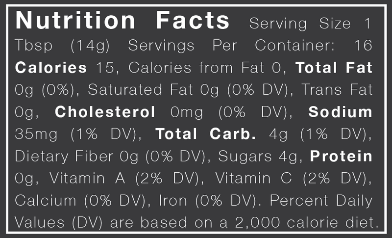 tomatoes, sugar, apple cider vinegar, white sultanas, Kashmiri chilies, fresh garlic, fresh ginger, cumin, garam masala, sea salt